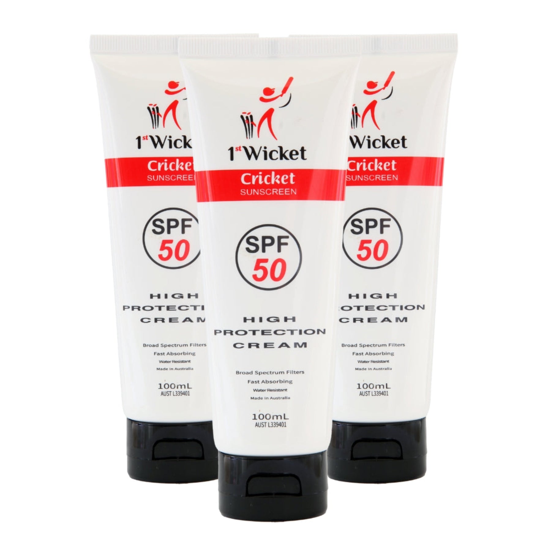 Cricket Clubs host a summer sporting environment where your players spend extended periods on the field,  either batting or fielding, and therefore are exposed to the sun. With the creation of 1st Wicket Cricket Sunscreen, we now offer clubs a quality Australian Made sunscreen to protect your players while they are representing your club, and playing the game they love. 1st Wicket SPF50 broad spectrum Sunscreen gives them the best possible protection for their skin while playing under the sun’s harmful rays.